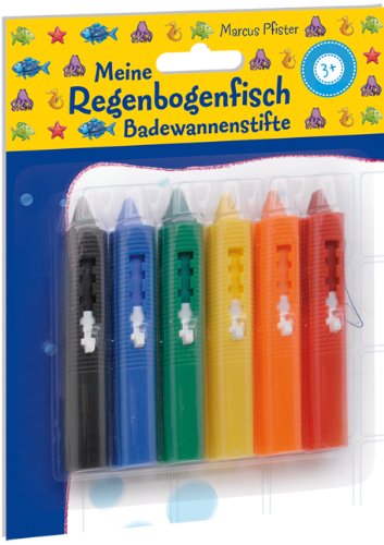 Meine Regenbogenfisch Badewannenstifte . Verwandeln die Badewanne in eine Unterwasserwelt. 6 wasserlösliche Wachsmalstifte mit Schiebehülse.Schadstofffrei.